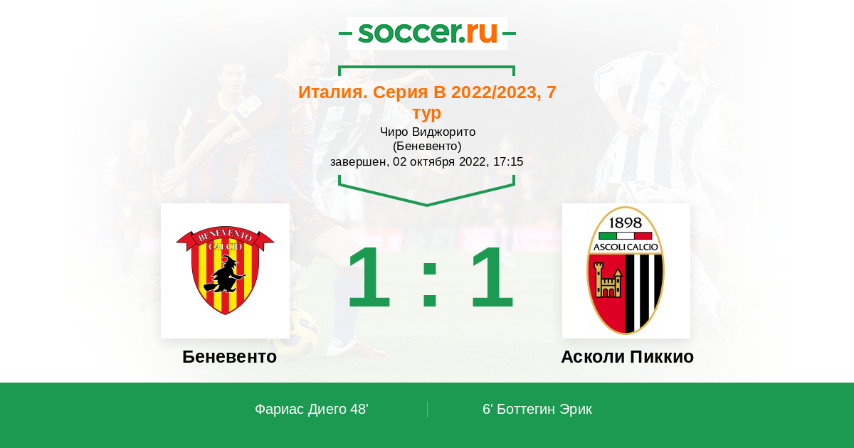 «Беневенто» — «Асколи Пиккио». Прогноз на матч итальянской Серии В (02.10.2022)