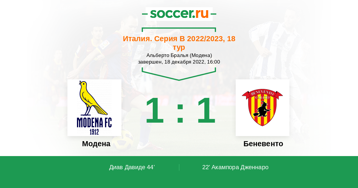 «Модена» — «Беневенто». Прогноз на матч итальянской Серии B (18.12.2022)