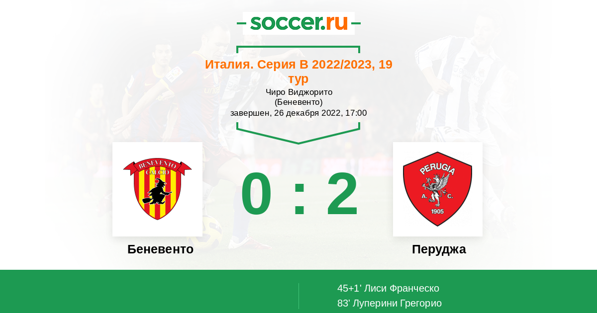 «Беневенто» — «Перуджа». Прогноз на матч Серии В (26.12.2022)