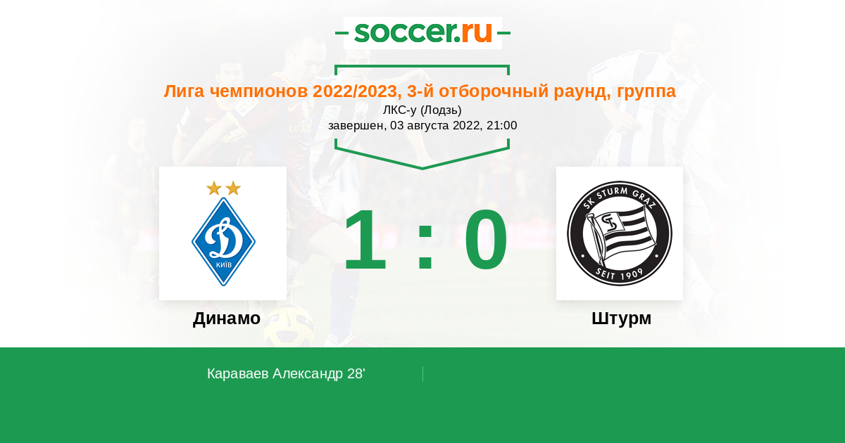 Мы приготовили прогноз и обзор ставок на матч квалификации Лиги чемпионов «Динамо» Киев – «Штурм», который состоится 3 августа 2022 года в Польше.