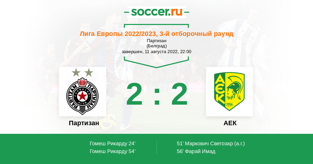 «Партизан» — АЕК. Прогноз на матч Лиги Европы (11.08.2022)