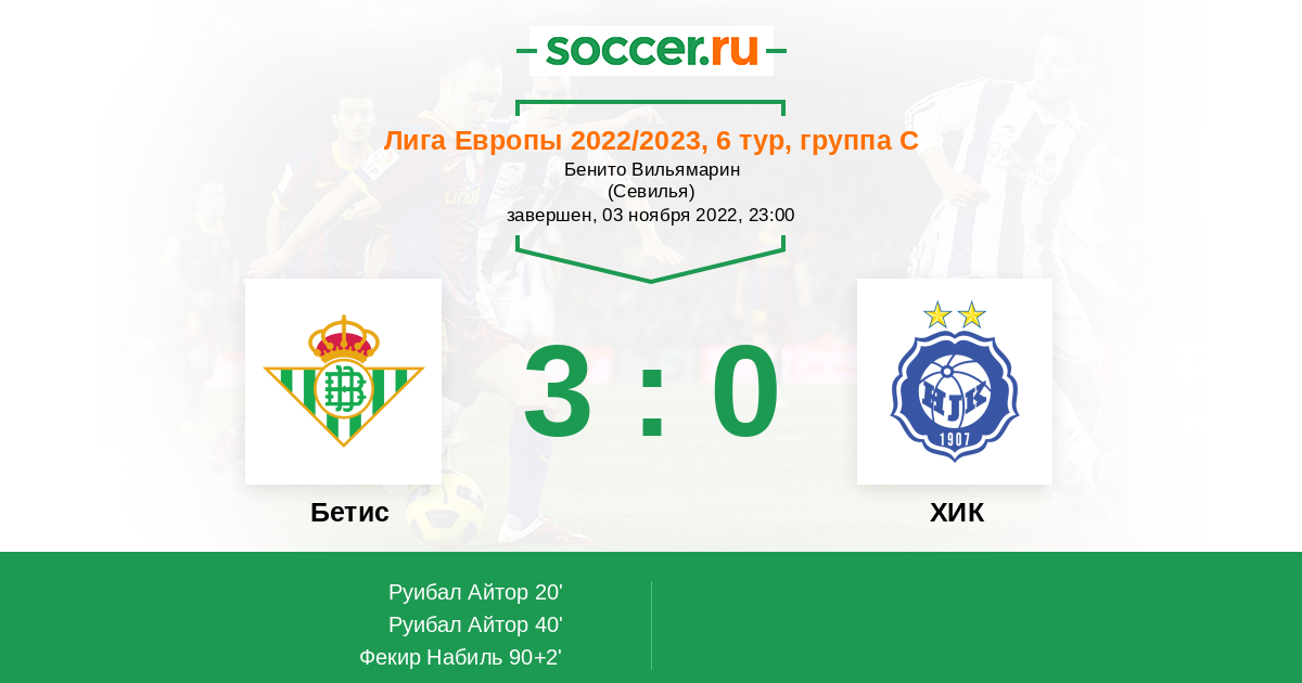 «Бетис» — ХИК. Прогноз на матч Лиги Европы (03.11.2022)
