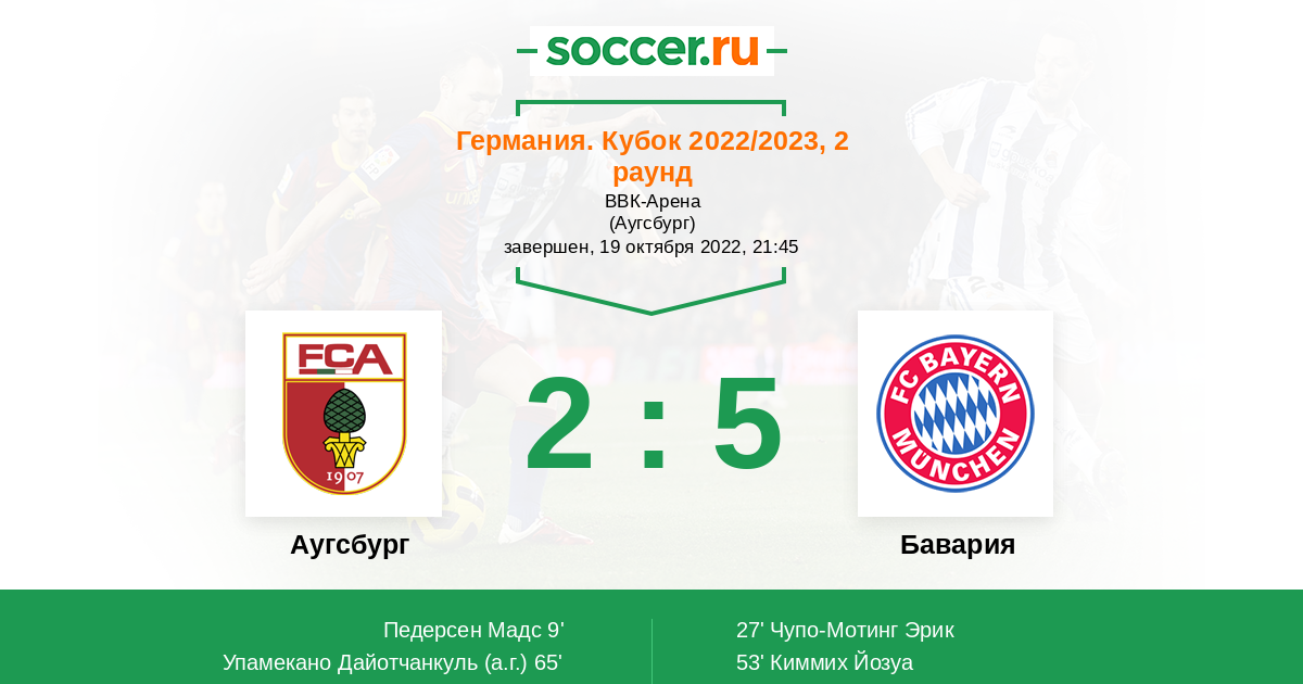 Не прошло и месяца как Аугсбург выиграл у Баварии. И тогда тоже никто и предположить немог что Бавария может проиграть аутсайдеру . Ну сегодня наврядли будет повторение . На мой субъективный взгляд сегодня будет разнос Аугсбурга.