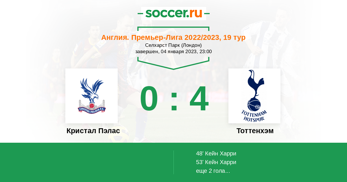 «Кристал Пэлас» — «Тоттенхэм». Прогноз на матч АПЛ (04.01.2023)