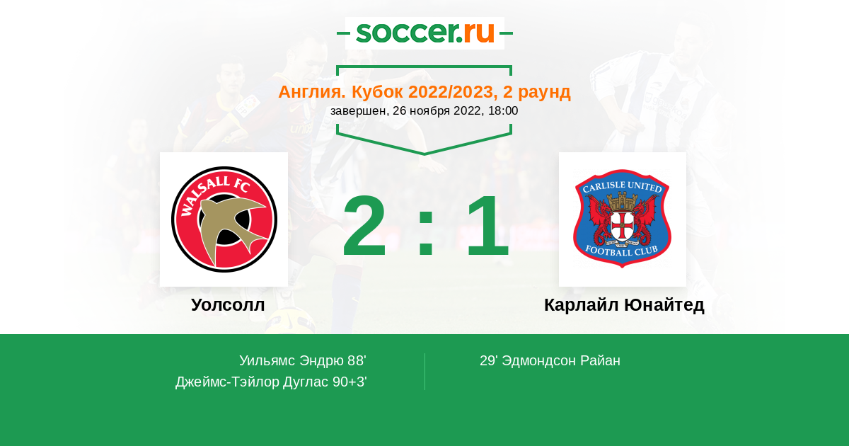 «Уолсолл» — «Карлайл Юнайтед». Прогноз на матч Кубка Англии (26.11.2022)