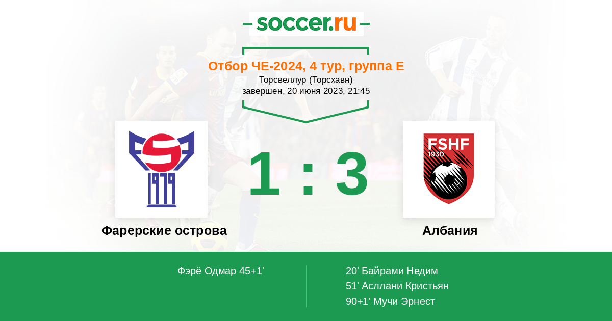 Фарерские острова – Албания. Прогноз матча квалификации Евро 2024 (20.06.2023)