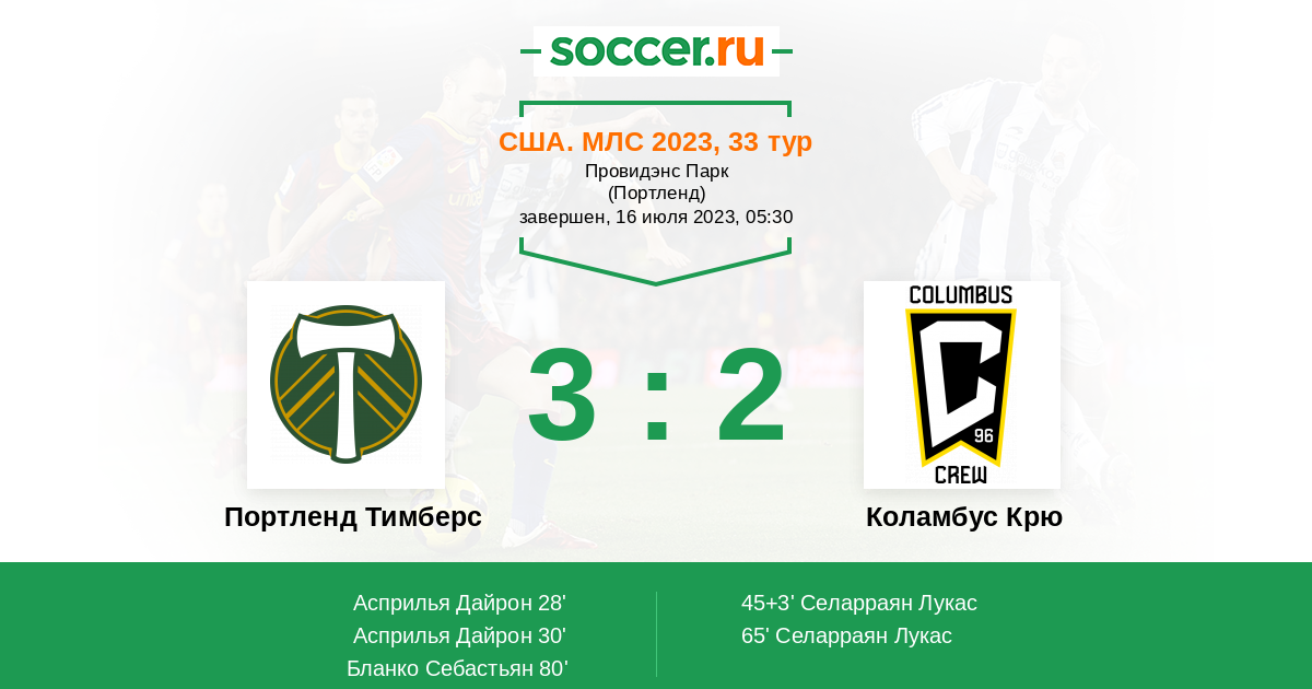 «Портленд Тимберс» — «Коламбус Крю». Прогноз на матч МЛС (16.07.2023)