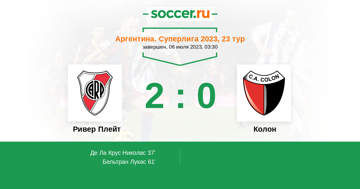 «Ривер Плейт» — «Колон». Прогноз на матч Суперлиги Аргентины (06.07.2023)