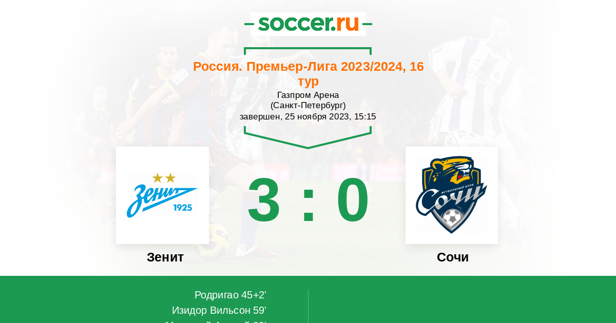 В 16 туре чемпионата России чемпион страны «Зенит» принимает «Сочи». Предлагаем обзор ставок букмекеров и прогнозы на этот матч.