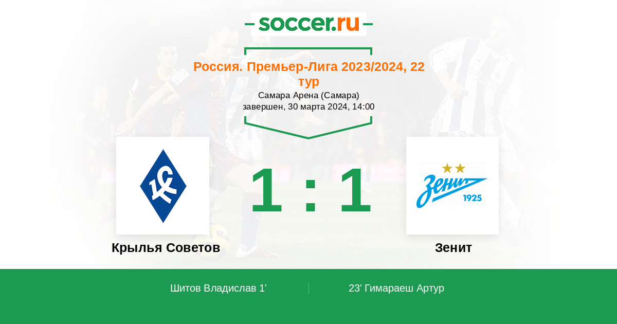 «Крылья Советов» — «Зенит». Прогноз на матч РПЛ (30.03.2024)