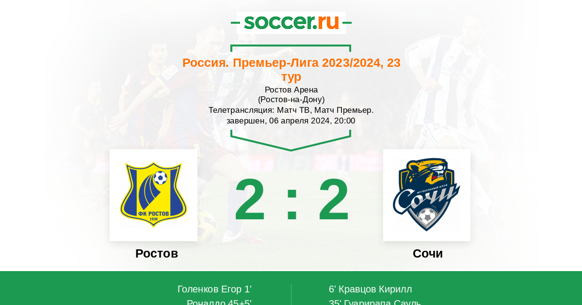 «Ростов» — «Сочи». Прогноз на матч чемпионата России (06.04.2024)