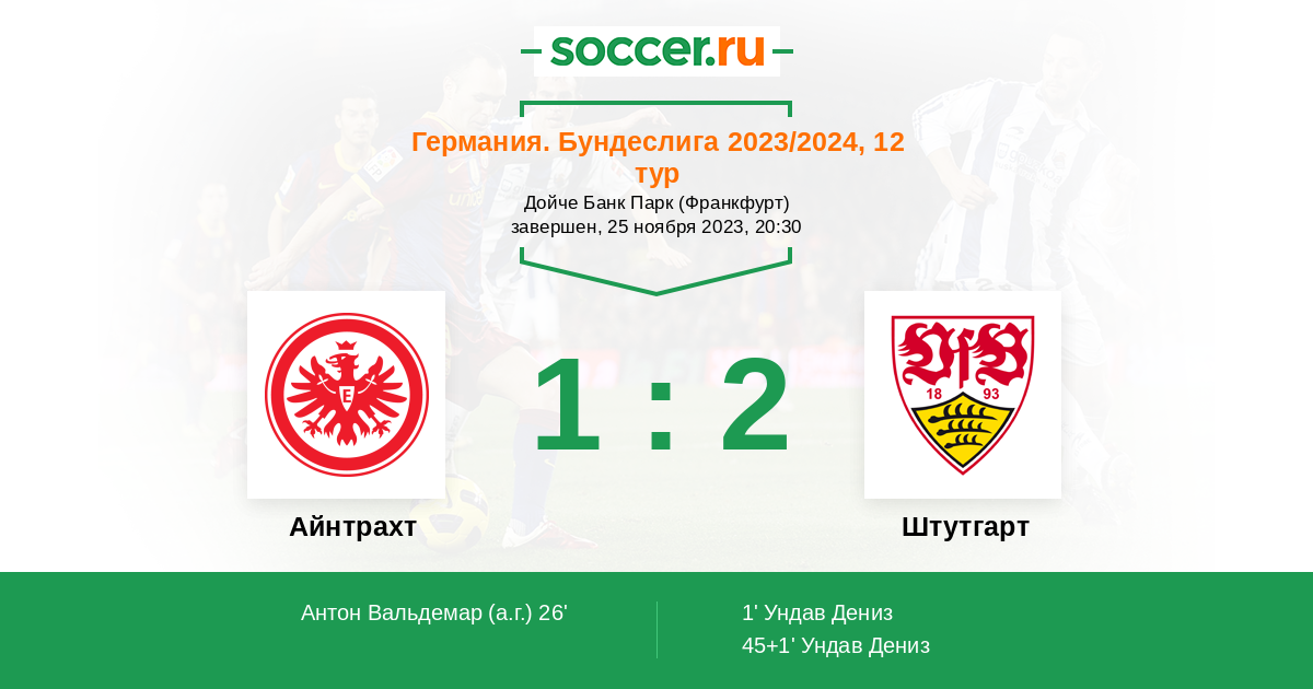 Увлекательный поединок пройдет в 12 туре, где «Айнтрахт» ждет в гости «Штутгарт». Предлагаем ознакомиться с прогнозами и обзорами ставок на поединок.