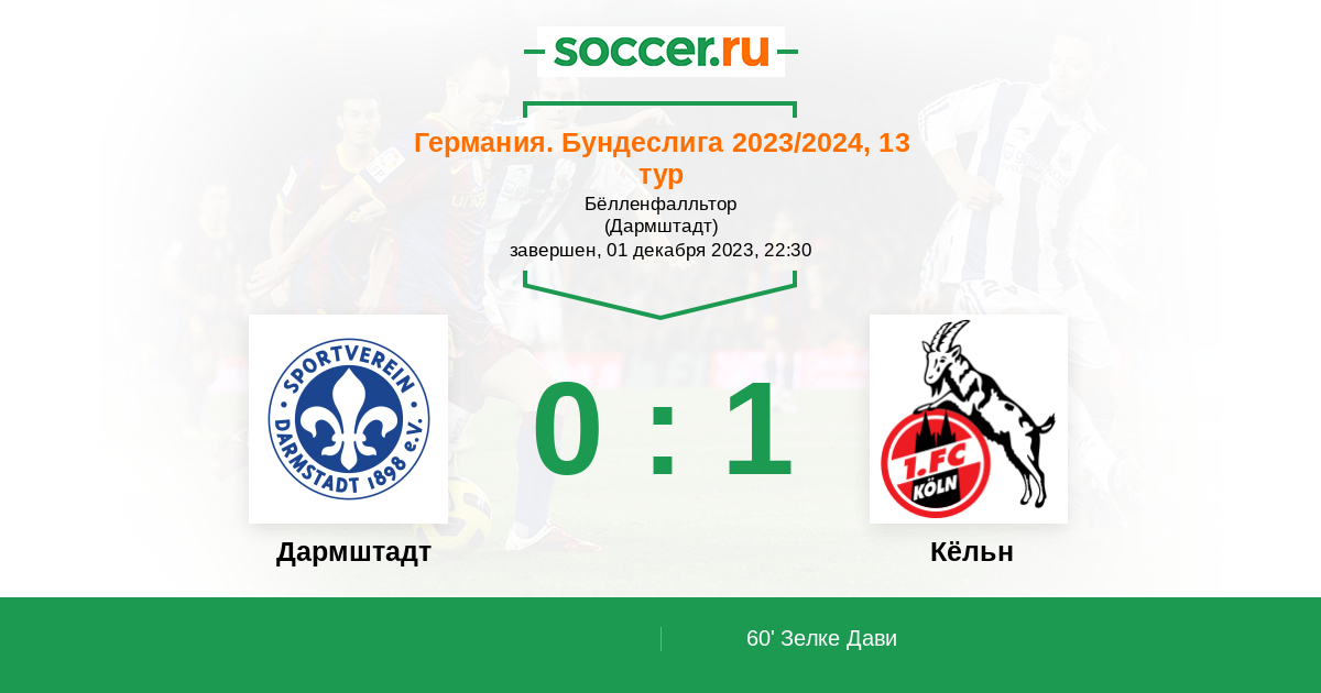 Записи блогов матча Дармштадт против Кёльн