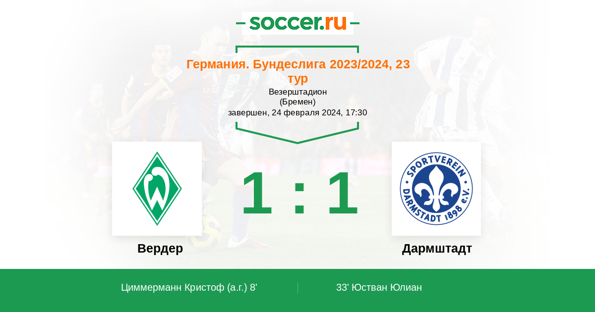 Записи блогов матча Вердер против Дармштадт
