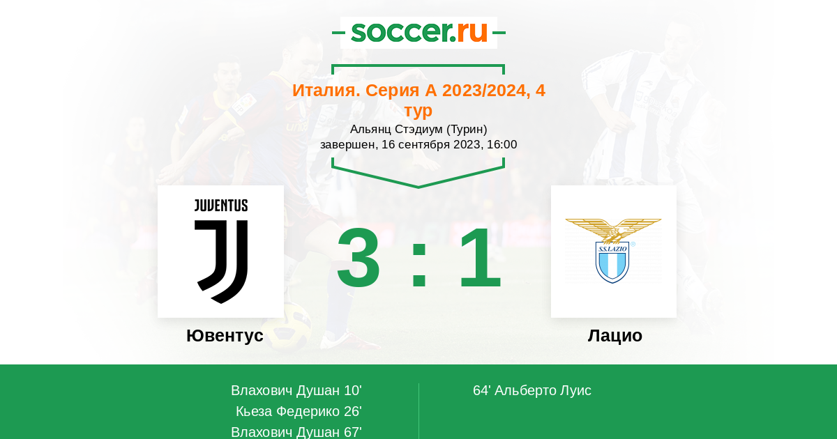 В четвертом туре чемпионата «Ювентус» принимает на своем поле «Лацио». Мы предлагаем ознакомиться с прогнозами и обзорами ставок на поединок.