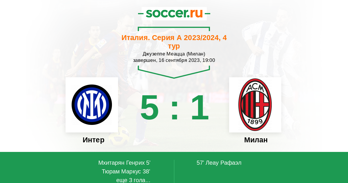 «Интер» — «Милан». Прогноз на матч Серии А (16.09.2023)