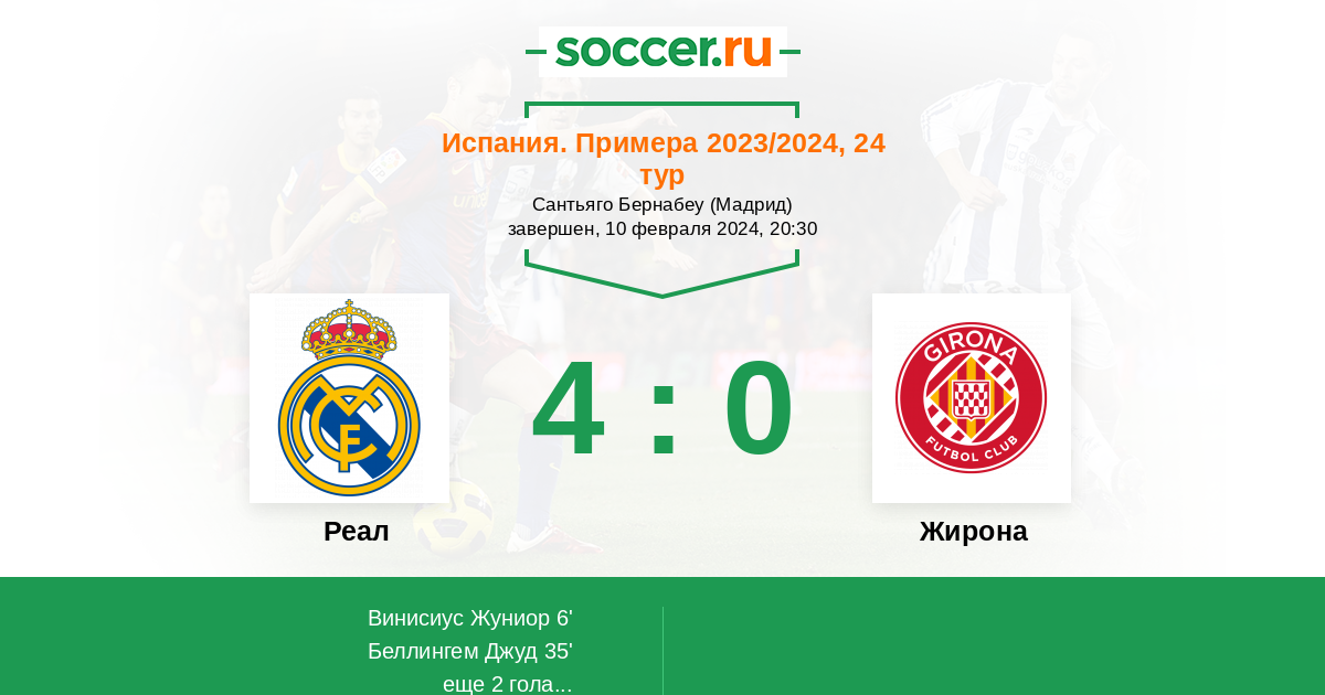 Павел, абсолютно с Вами согласен, во всём!!! Но всё-таки, я бы не стал делать, такой сочный прогноз, уже сейчас. То, что, давно, пора показать, кто в доме хозяин- сомнений не вызывает. Реал играет- в солидный, дворянский, элитный футбол!!! В то время, как Жирона- выглядит очень примитивно... Мне хватило, для просмотра, нескольких игр этой команды, чтобы сделать выводы. И, в проигранном матче на кубок, и с мертвой Севильей, и РС, отчетливо просматривалось отсутствие фундаментальности в игре Жироны. Катастрофические ошибки в обороне, откровенно детские и нелепые. Причем, это ошибки, не просто оборонительного характера- это ошибки системные, комплексные... И это, с командами- невысокого класса. Реал должен быть чемпионом и по составу, и по игре, и по тренерской гениальности Великого Карла!!! Но, предвосхищать события, я бы не стал. После игры обсудим. Тем более, как бы нe закончился матч, он, в любом случае, финальную точку, еще не поставит...