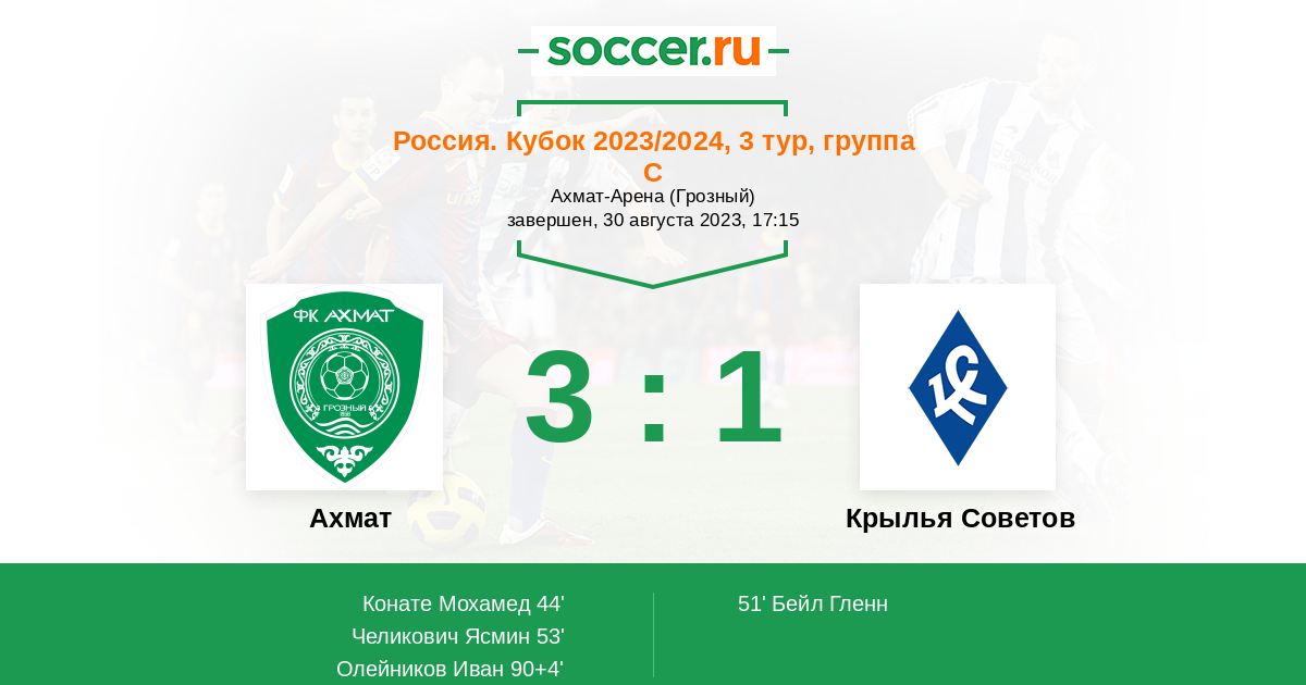 «Ахмат» — «Крылья Советов». Прогноз на матч Кубка России (30.08.2023)
