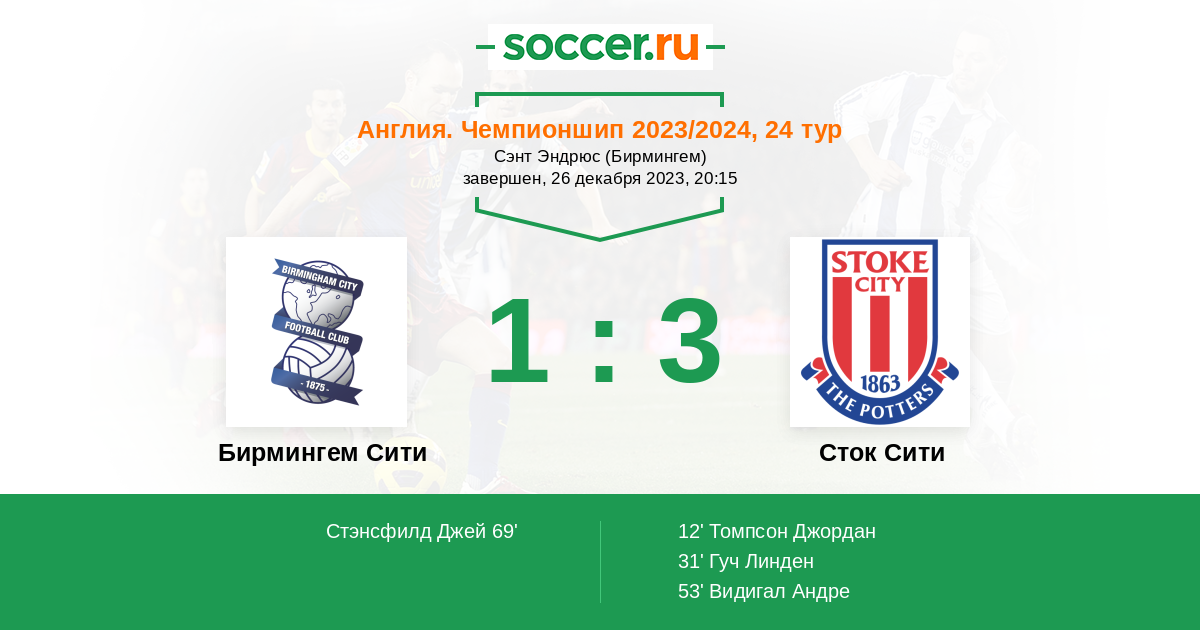«Бирмингем» — «Сток Сити». Прогноз на матч Чемпионшипа (26.12.2023)