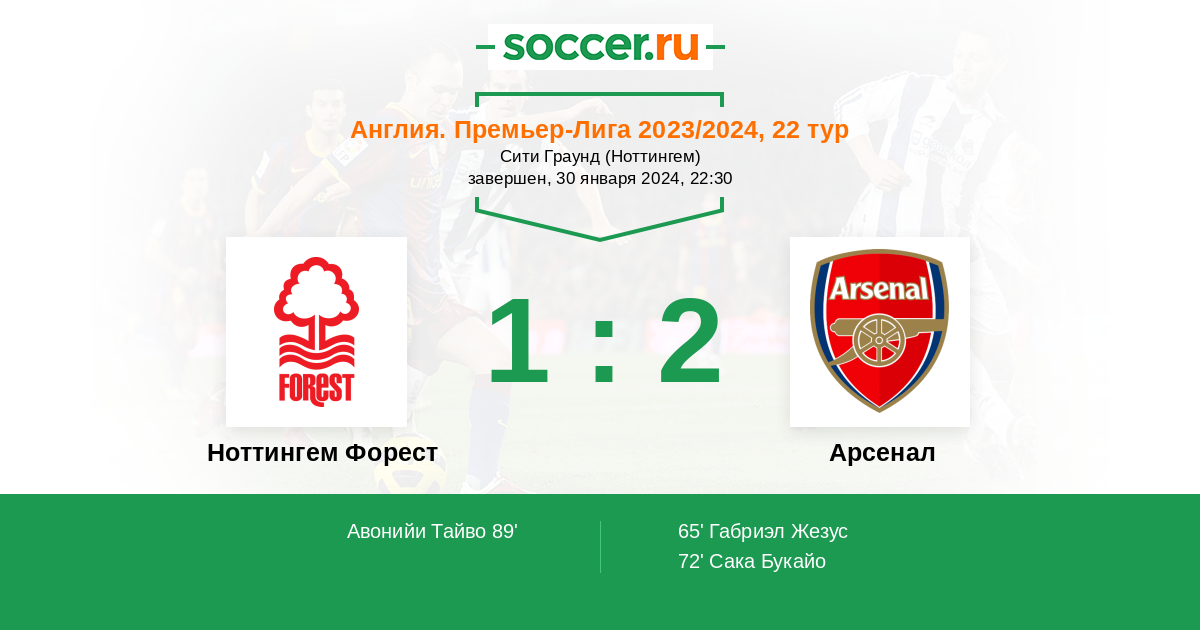 «Ноттингем Форест» — «Арсенал». Прогноз на матч АПЛ (30.01.2024)