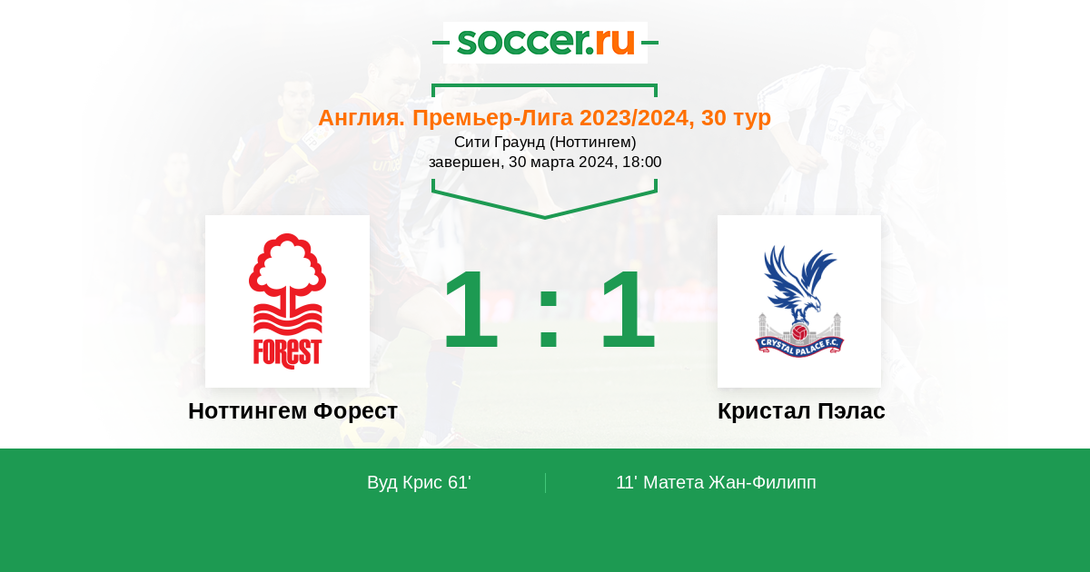 «Ноттингем Форест» — «Кристал Пэлас». Прогноз на матч АПЛ (30.03.2024)