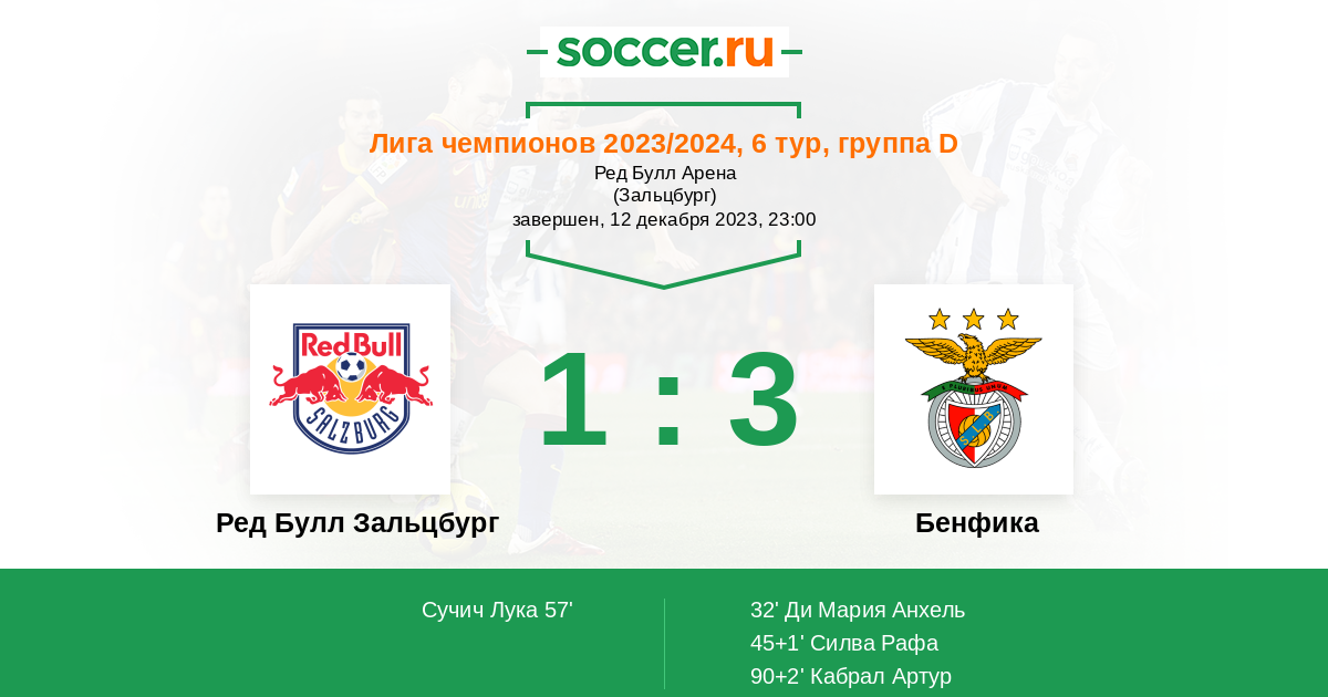 «Зальцбург» — «Бенфика». Прогноз на матч Лиги чемпионов (12.12.2023)