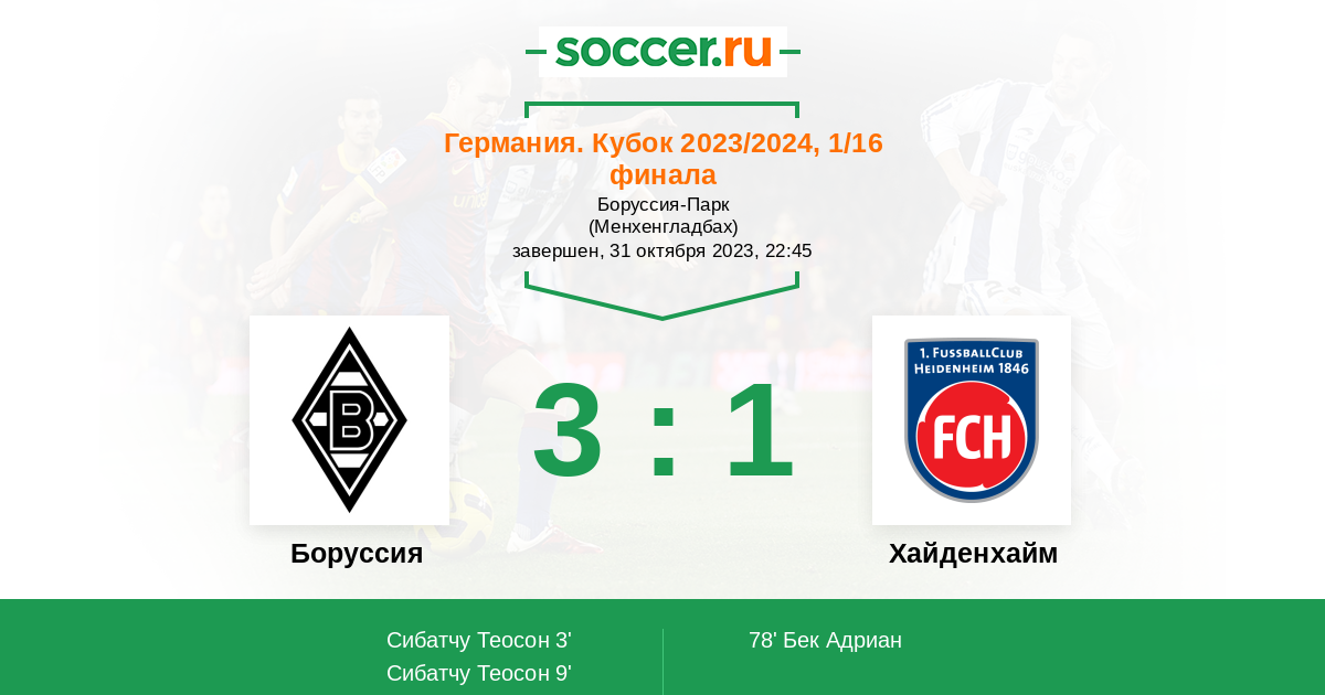 В 1/16 финала кубка Германии «Хайденхайм» приедет в гости к «Боруссии» М. Предлагаем прогноз и обзор ставок у букмекеров на эту встречу.