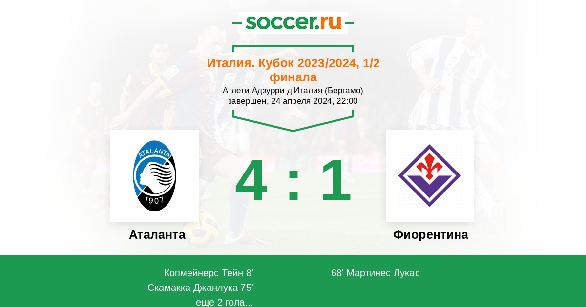 «Аталанта» — «Фиорентина». Прогноз на матч Кубка Италии (24.04.2024)