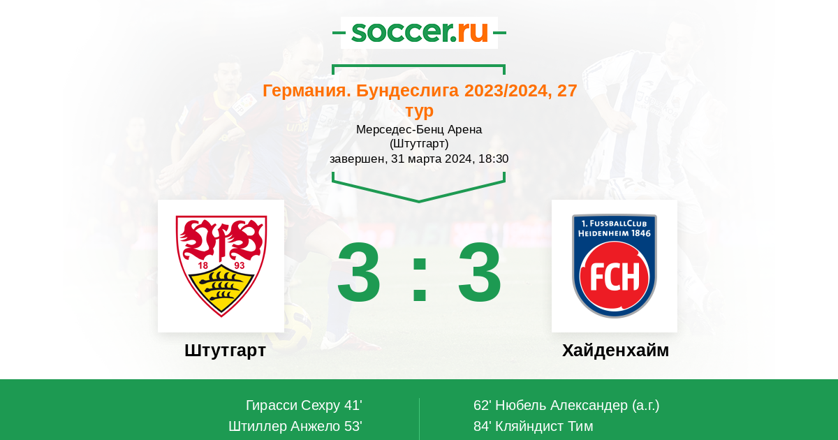 В 27 туре чемпионата Германии «Хайденхайм» приедет в гости к «Штутгарту». Предлагаем прогноз и обзор ставок у букмекеров на эту встречу.
