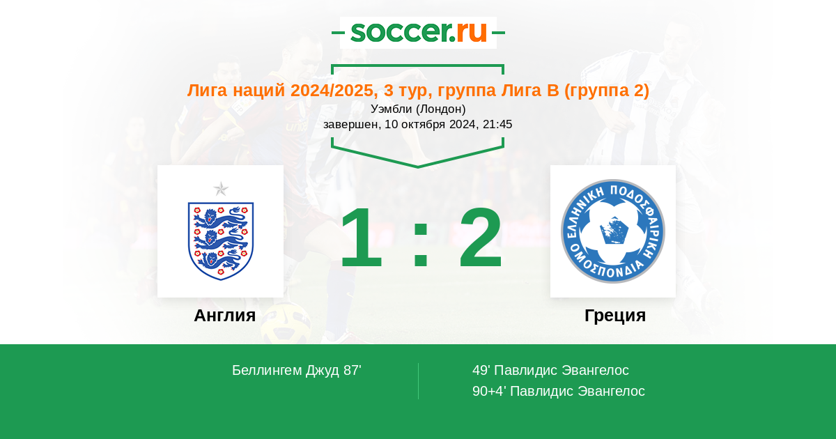 Англия – Греция. Прогноз на матч Лиги наций (10.10.2024)