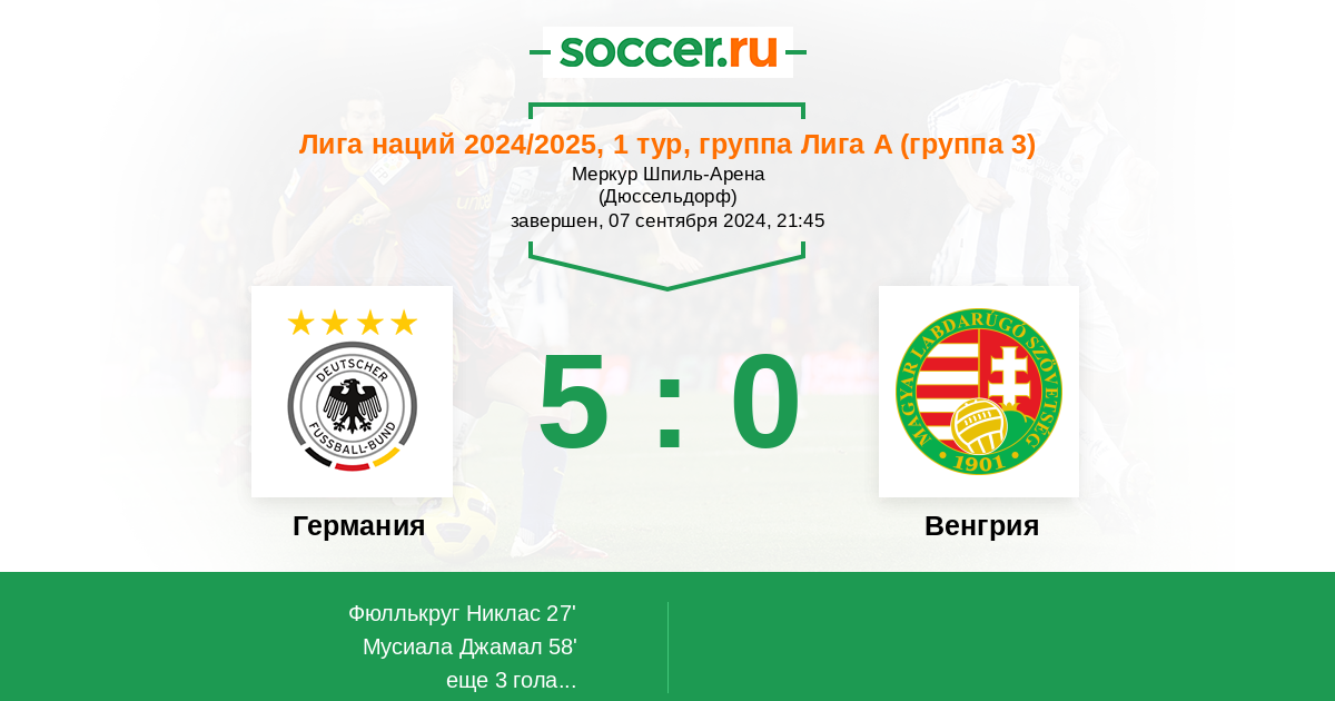 Маститая и опытная сборная Германии в домашнем матче с венгерской командой вряд ли столкнётся с какими-то проблемами, наверняка одержит уверенную победу и совершенно точно не даст гостям выиграть оба тайма