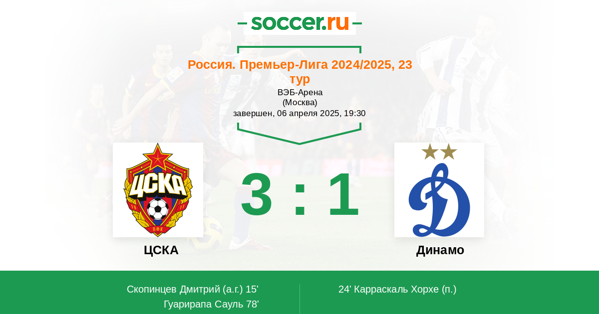 В матче двадцать третьего тура Российской премьер лиги между командами ЦСКА Москва и московским Динамо рискну предположить что на этот раз будет тяжёлая борьба и минимальное количество голов, возможно всего один и забьют его хозяева