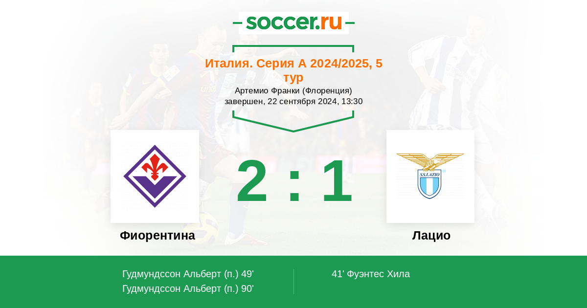 «Фиорентина» — «Лацио». Прогноз на матч Серии А (22.09.2024)