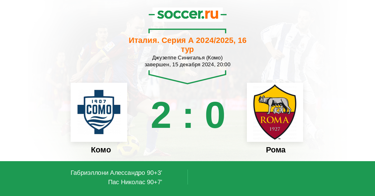 Записи блогов матча Комо против Рома