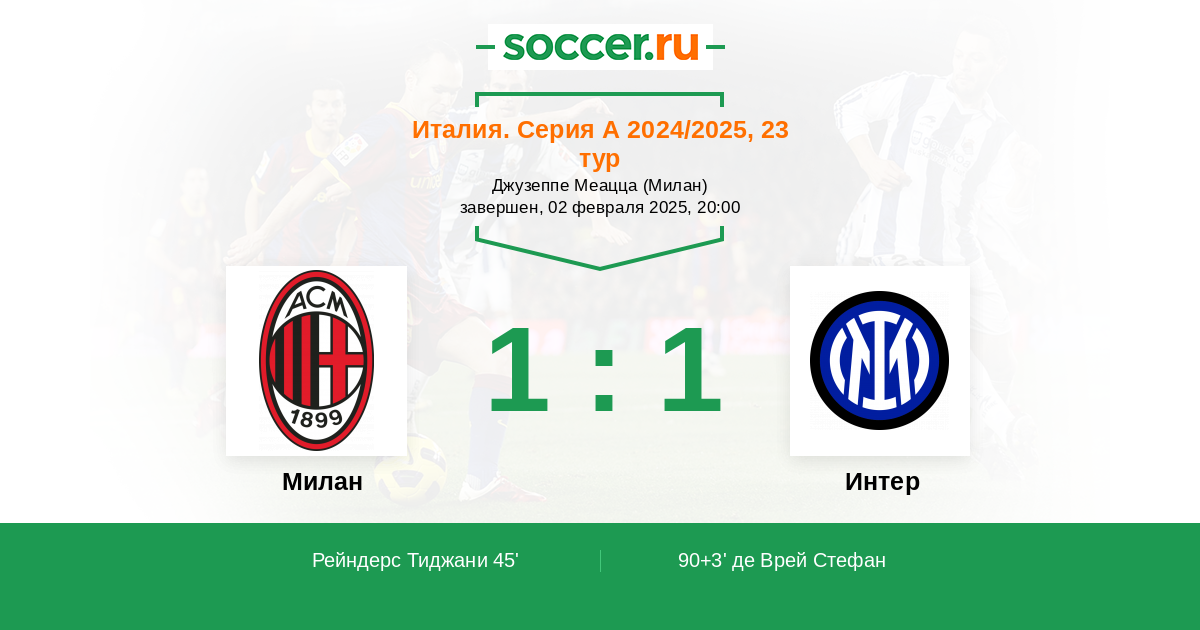 «Милан» — «Интер». Прогноз на матч Серии А (02.02.2025)