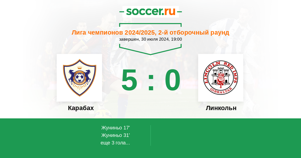 30-го июля встретятся команды Азербайджана "Карабах” и Гибралтара "Линкольн Ред Импс”. Рекомендуем ознакомиться с представленным прогнозом и доступными ставками.