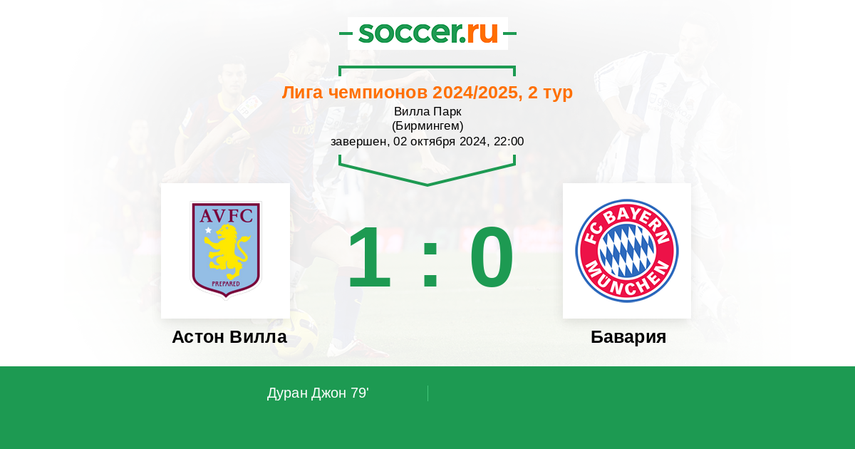 «Астон Вилла» — «Бавария». Прогноз на матч Лиги чемпионов (02.10.2024)