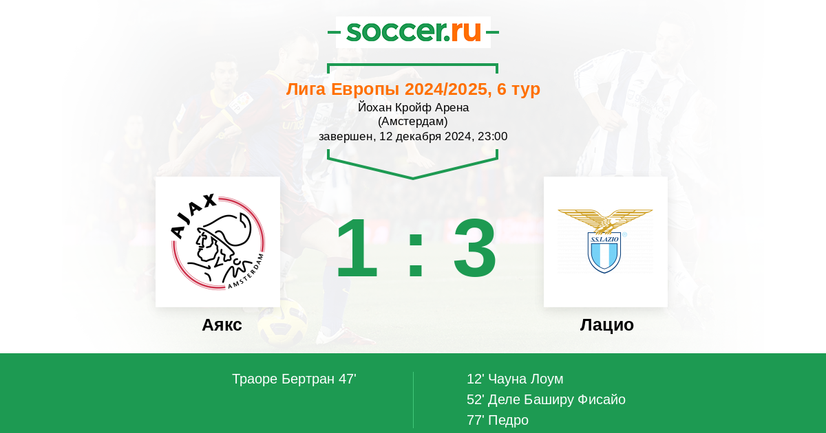 Аякс в стадии перерождения, далек от слова "грозный" (как в былые времена), а вот Лацио на отличном подъёме - разобрались у себя дома с Наполи, а главное есть игра.