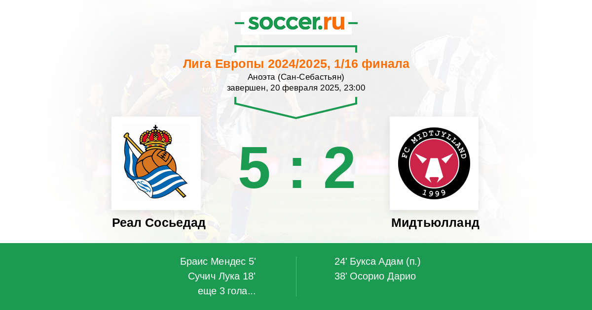 Записи блогов матча Реал Сосьедад против Мидтьюлланд