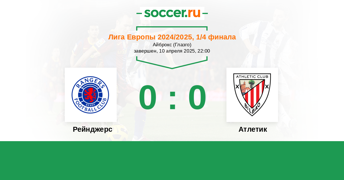 В матче 1/4 финала Лиги Европы между командами Глазго Рейнджерс и Атлетик Бильбао явного фаворит команда гостей, но и хозяева не простой пассажир турнира и могут удивить, футбол будет непредсказуем, в связи с этим рискну предположить ничью в первом матче