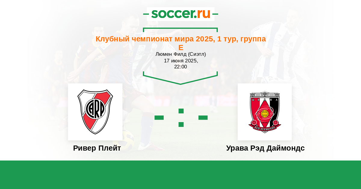 «Ривер Плейт» — «Урава Рэд Даймондс». Прогноз на матч клубного чемпионата мира (17.06.2025)