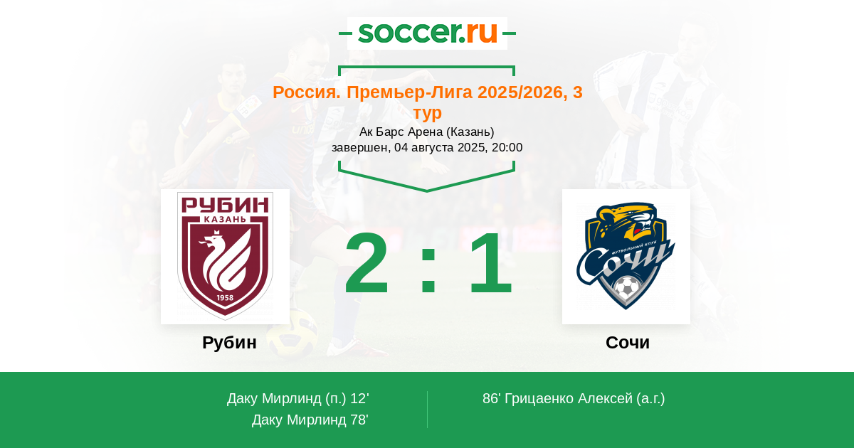 Для Рубина начало лучше не придумать, посмотрим, как они разовьют свое преимущество, думаю, вполне вероятен сценарий матча с Ахматом.