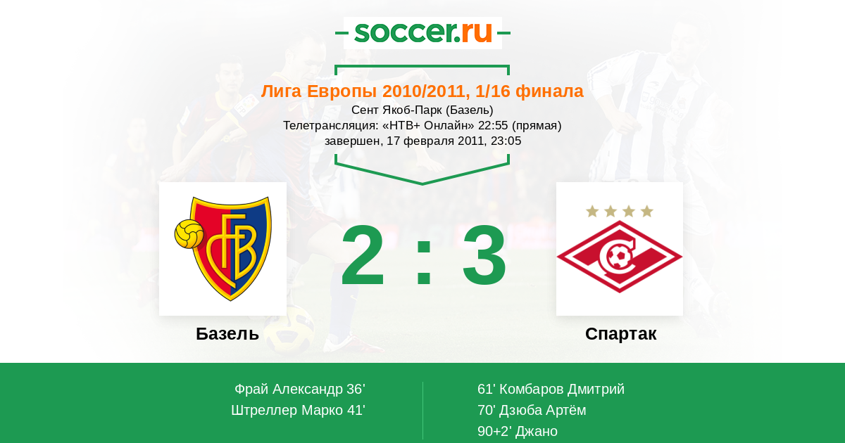 Записи блогов матча Базель против Спартак