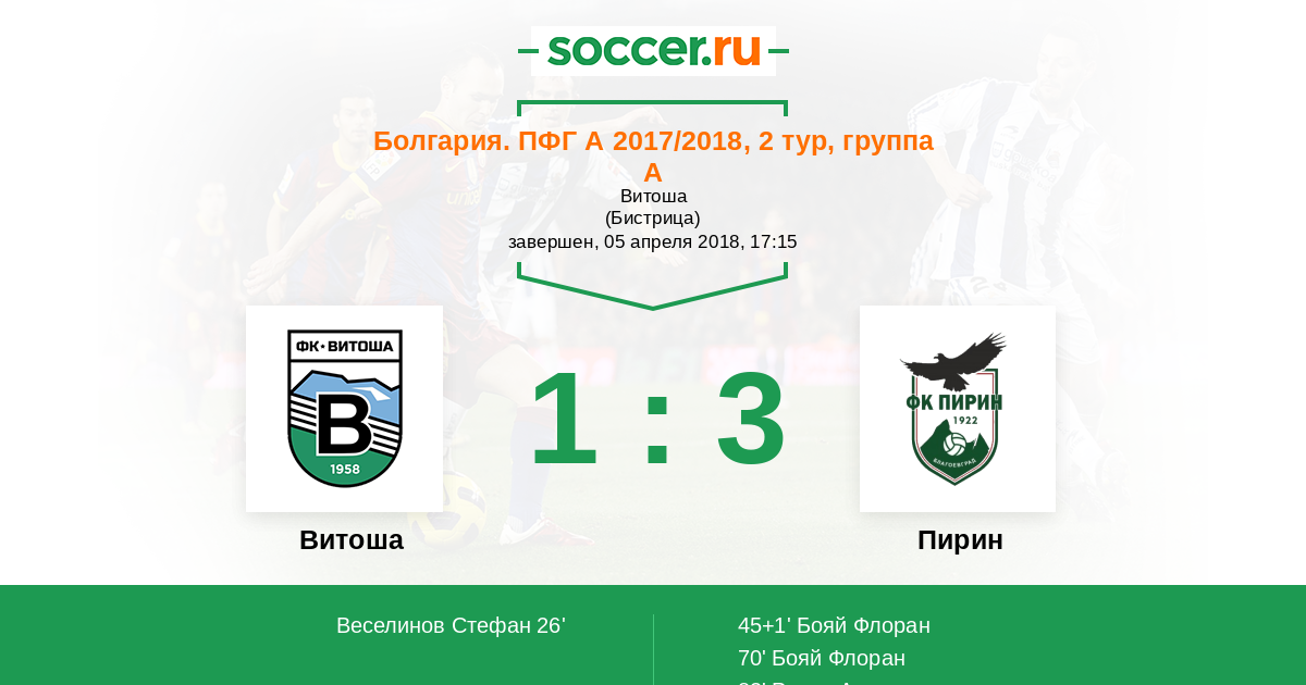 Матчи Болгария. ПФГ А 2017/2018