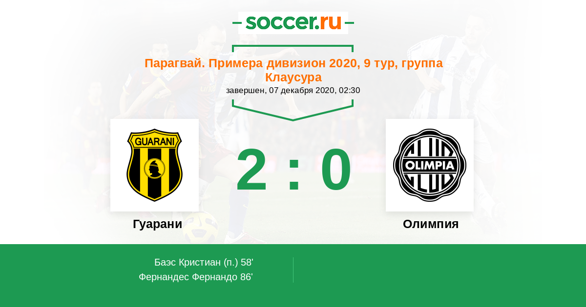 Матчи Парагвай. Примера дивизион 2020