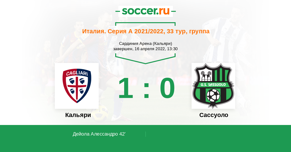 «Кальяри» проиграл пять матчей кряду и вновь оказался на краю пропасти – наверняка сегодня «россоблу» будут рисковать в попытке взять три балла. «Сассуоло» в обороне проваливается регулярно, но при этом «нероверди» имеют очень мощную атаку, так что в таком поединке обмен голами практически неизбежен.