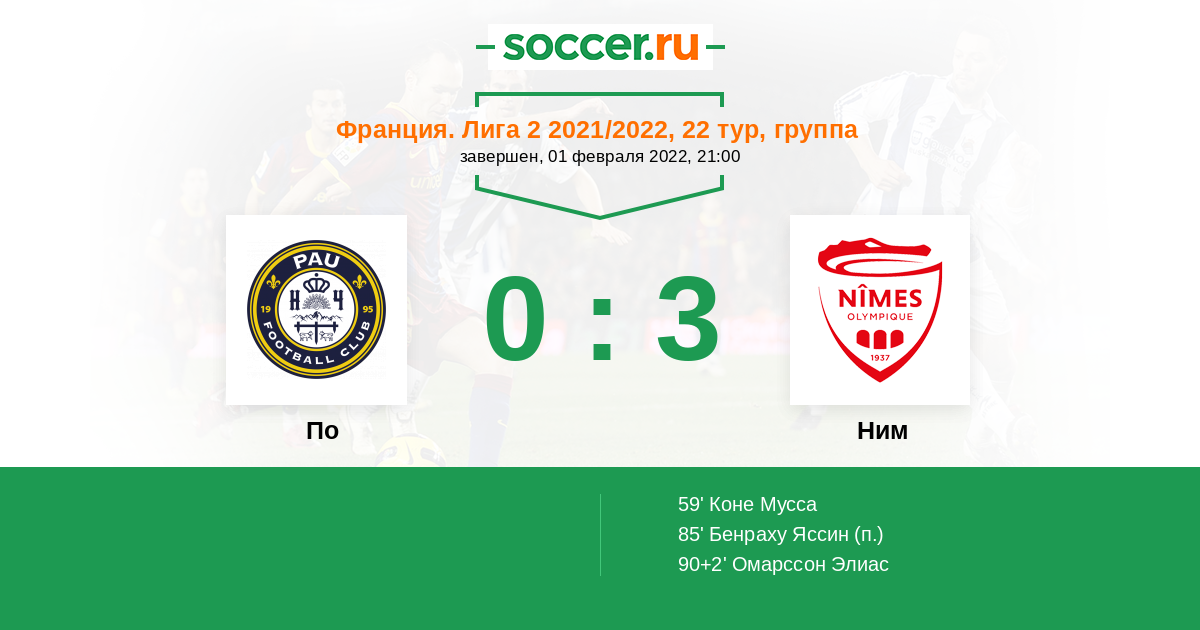 По Логотип футбольный клуб По (Бизано) 0:3 Логотип футбольный клуб Ним Ним