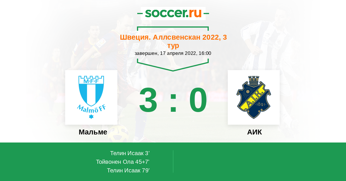 Матчи Швеция. Аллсвенскан 2022