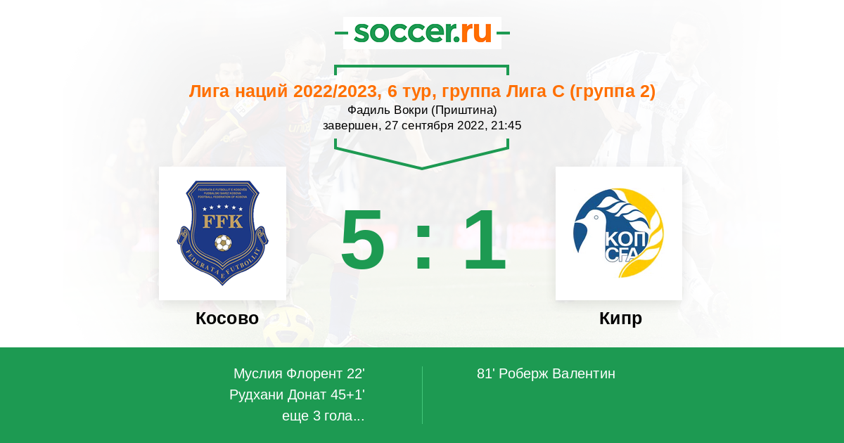 Игра за вылет из группы С. Кто проиграет, тот и вылетел. И, думаю, это будет Кип. Игроки Косово уже быгрывали в и юне киприотов. Вполне по силам обыграть еще раз.