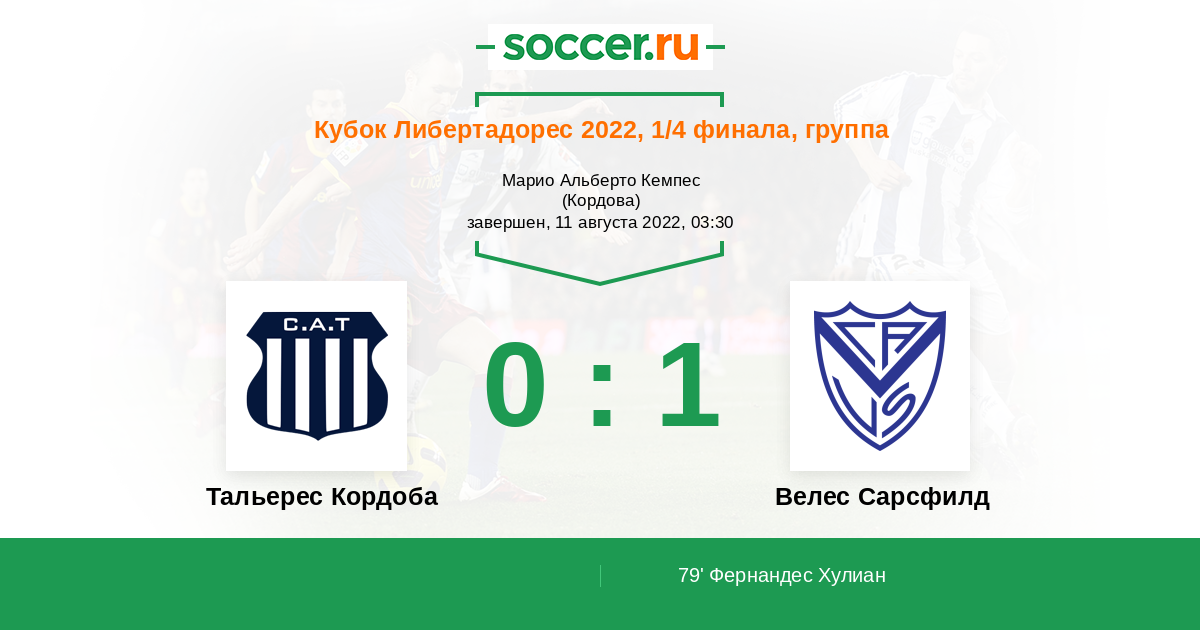 Я думаю что в этом противостоянии более чем явного фаворита на победу нет . Команда хозяев поля Тальерес Кордоба в гостях смогла забить два мяча команде хозяев Велесу Сарсфилду . Но я не думаю что и этот матч будет таким же на обилие голов . Скорее всего один мяч станет решающим в этом матче . Победа хозяев поля или ничья.